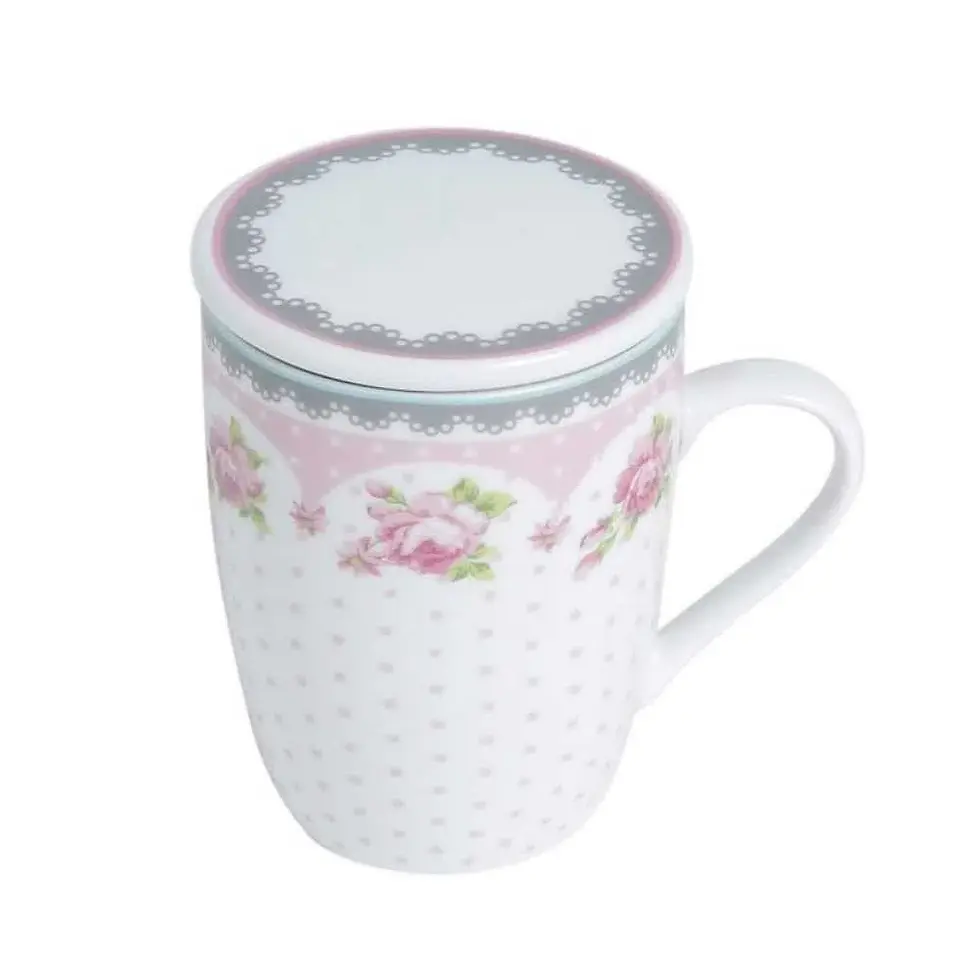 CANECA DE PORCELANA COM TAMPA E FILTRO SUPER WHITE LYOR 310ML